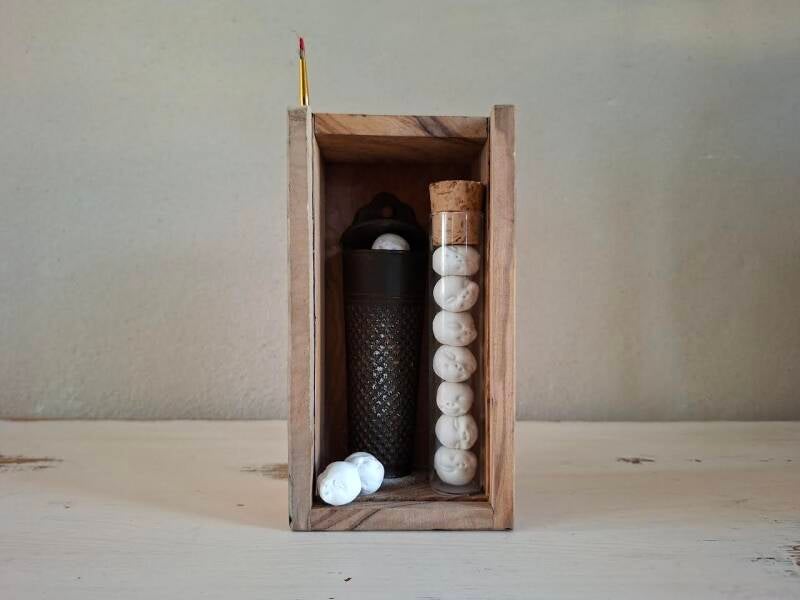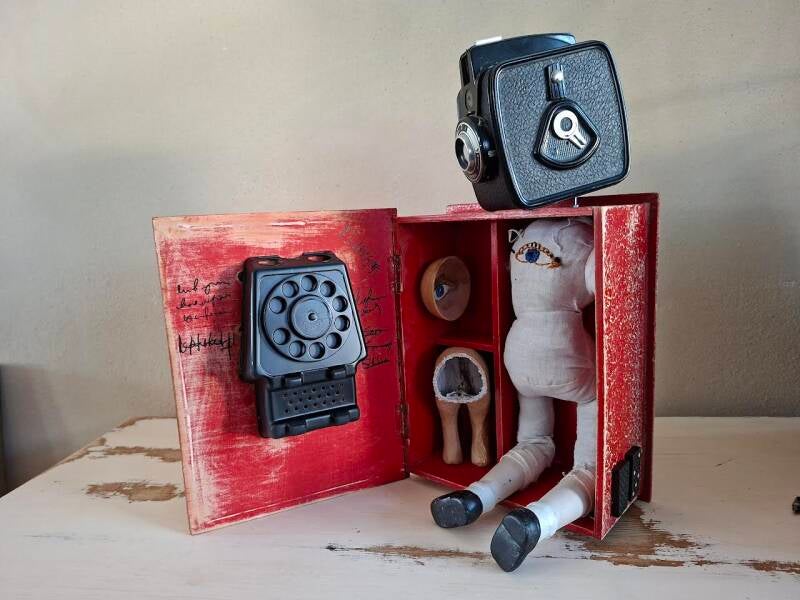 Duik in mijn nieuwste collectie van assemblages. Hier wil ik u uitnodigen om nieuwsgierigheid en verwondering te ervaren. Ontdek de verhalen die elk stuk vertelt en laat u meevoeren door de unieke vormen en texturen.